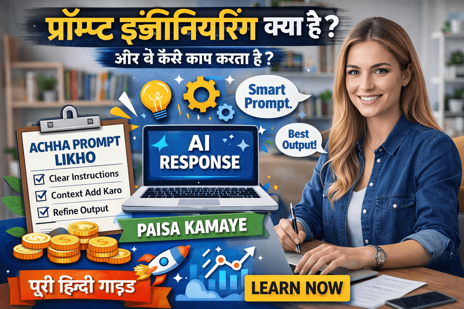 Prompt Engineering kya hai, kaise kaam karta hai aur AI se best output kaise le? Puri Hindi guide examples ke saath.